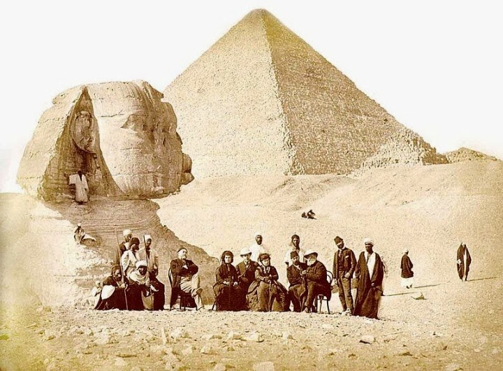 D. Pedro II junto à Esfinge em sua primeira viagem ao Egito (1871).